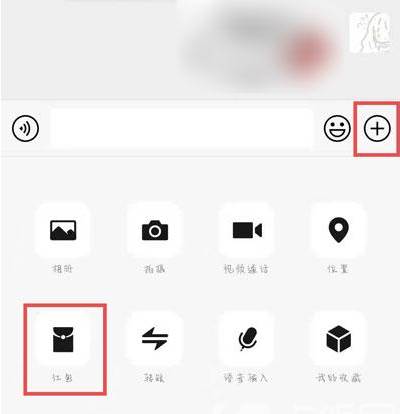2、点击进入聊天页面后,点击右上角的【+】按钮,选择【红包】;
